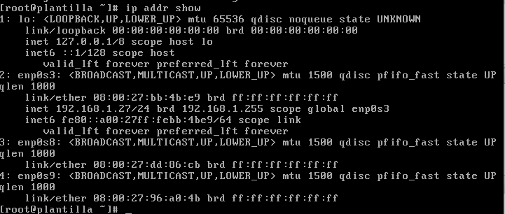La instalacion por defecto de Oracle Linux 7 nos dejará unos interfaces de red tal que así