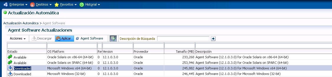 Una vez hecho eso, OEM12c nos indicará en un desplegable donde podemos descargar el último catálogo de agentes,en mi caso fué https://updates.oracle.com/Orion/Download/download_patch/p9348486_112000_Generic.zip