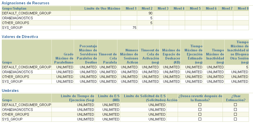 Lo primero que haremos es crear un plan al que llamaremos «NO_LOCKS», para ello lo mas sencilllo es copiar el DEFAULT_PLAN desde el EM, si por el contrario queremos hacerlo desde linea de sqlplus tenemos que: